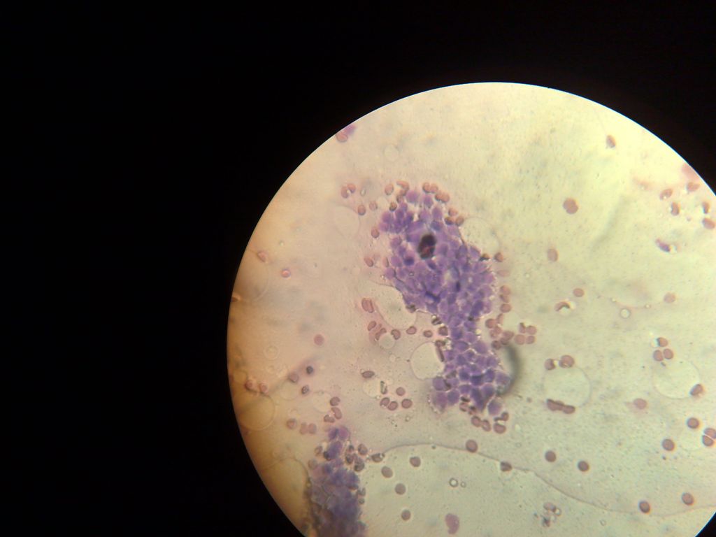 Realizamos biópsias com agulha de core e agulha fina para mama, e com agulha fina da tiroide com avaliação pelo método de Bethesda para quantificar a celularidade já na sala de exame, e posteriormente enviada aum excelente patologista.