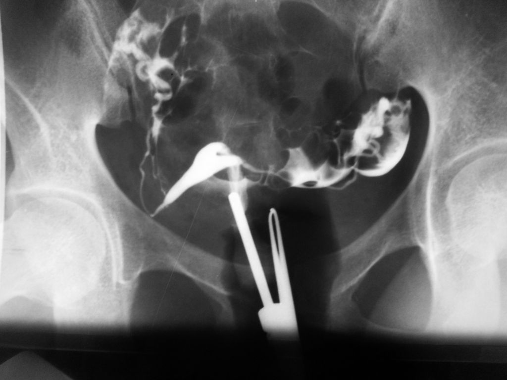 4) Histerossalpingografia - ótimo método para pesquisa de patologia da cavidade uterina e verificação da permeabilidade tubária, fundamental nos casos de esterilidade conjugal.